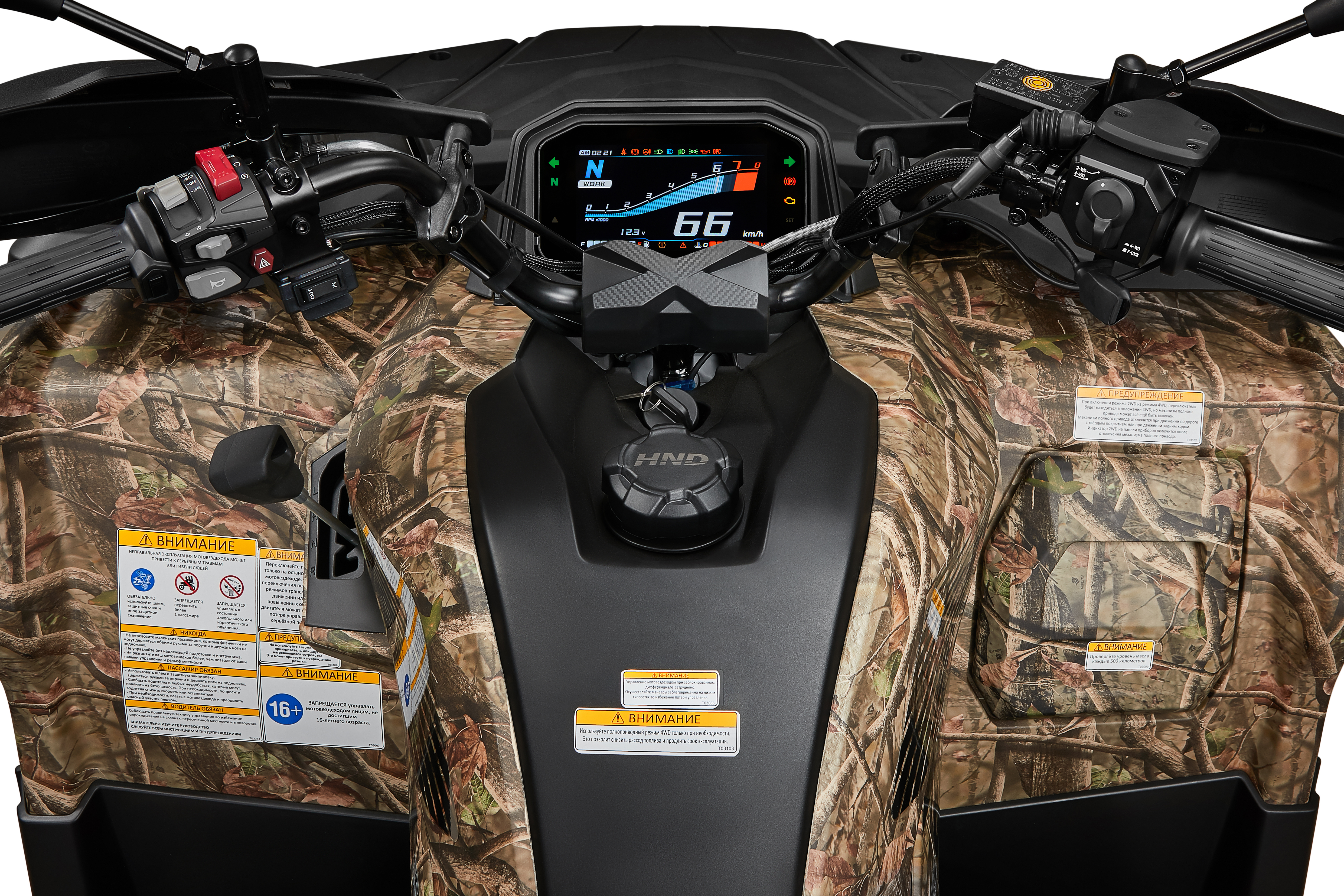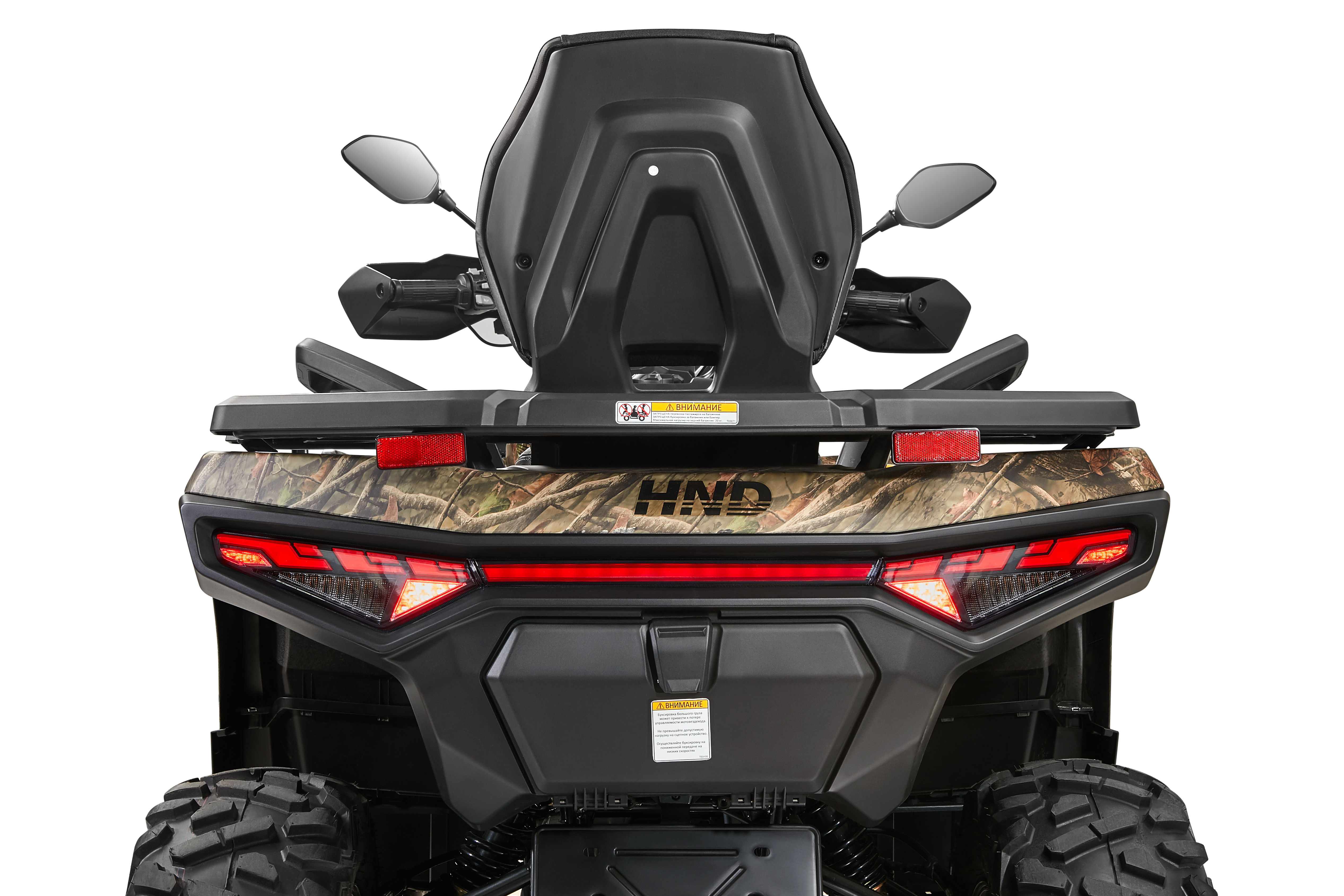 Квадроцикл оснащён удобными багажными площадками спереди и сзади из высокопрочного пластика, а также перчаточным ящиком и вместительным задним отделением – всё для комфортной перевозки вещей.