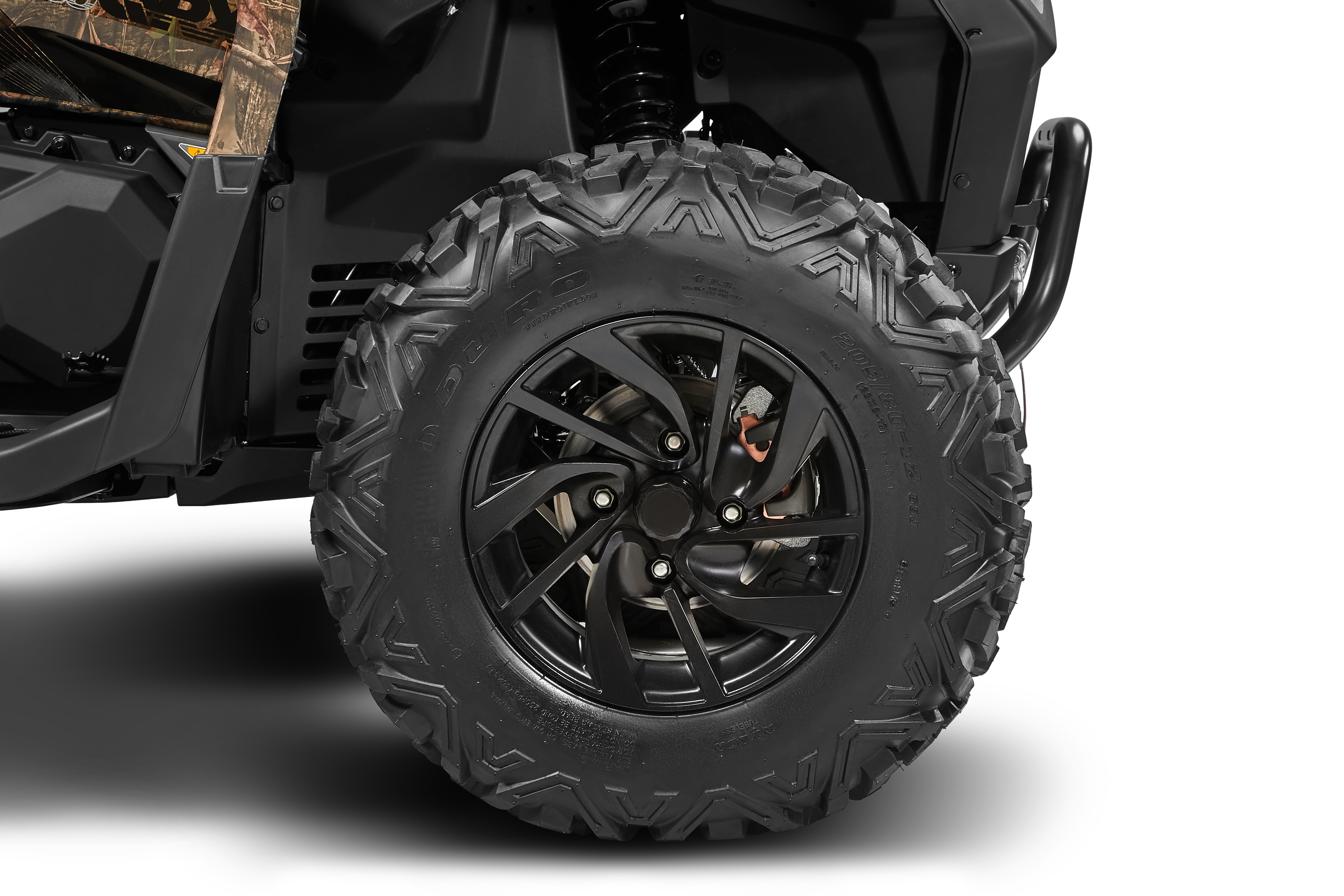 QRX 550 оснащен универсальными прочными шинами 25” с глубоким протектором на литых алюминиевых дисках 12”, которые обеспечивают максимальное сцепление на любых трассах, устойчивость и долговечность.